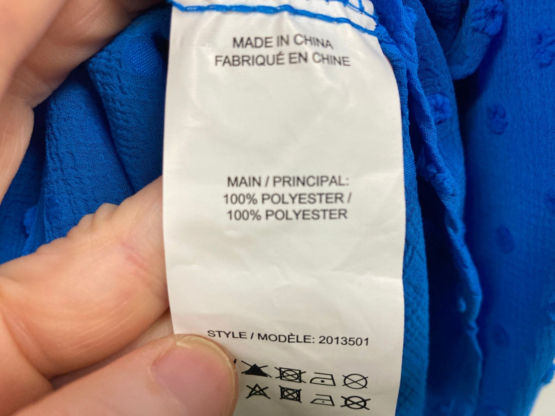 Elevate your wardrobe with this stunning woven top, designed to add a touch of sophistication to any outfit. Its tie-front detail and soothing sapphire color make it a versatile piece for both casual and formal occasions. Crafted with care, this top is brand new, ensuring you receive a flawless and stylish addition to your collection.